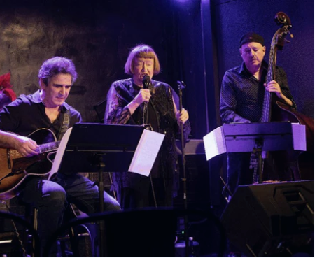 Jazz singer legend Sheila Jordan performs at Kolstein's on her 95th birthday with bass guitarist Roni Ben Hur (left) and double bass musician Harvie S